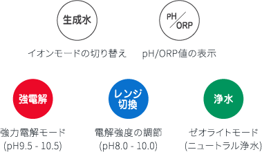 電解後のイオン水のpHを正確に保つ安定した性能の高さは、絶対的に信頼をおける健康のサポーターとなるでしょう。
