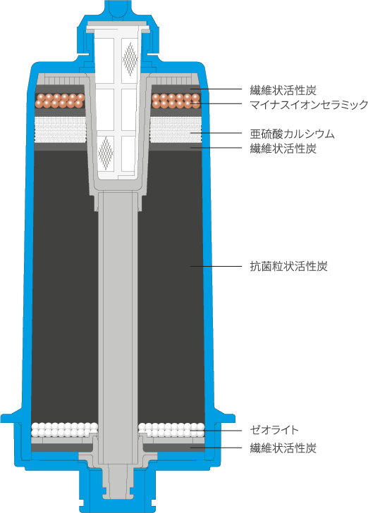 抗菌活性炭 残留塩素やトリハロメタンを除去します。純度を維持するため、フィルター内の細菌の増殖を阻止します |
